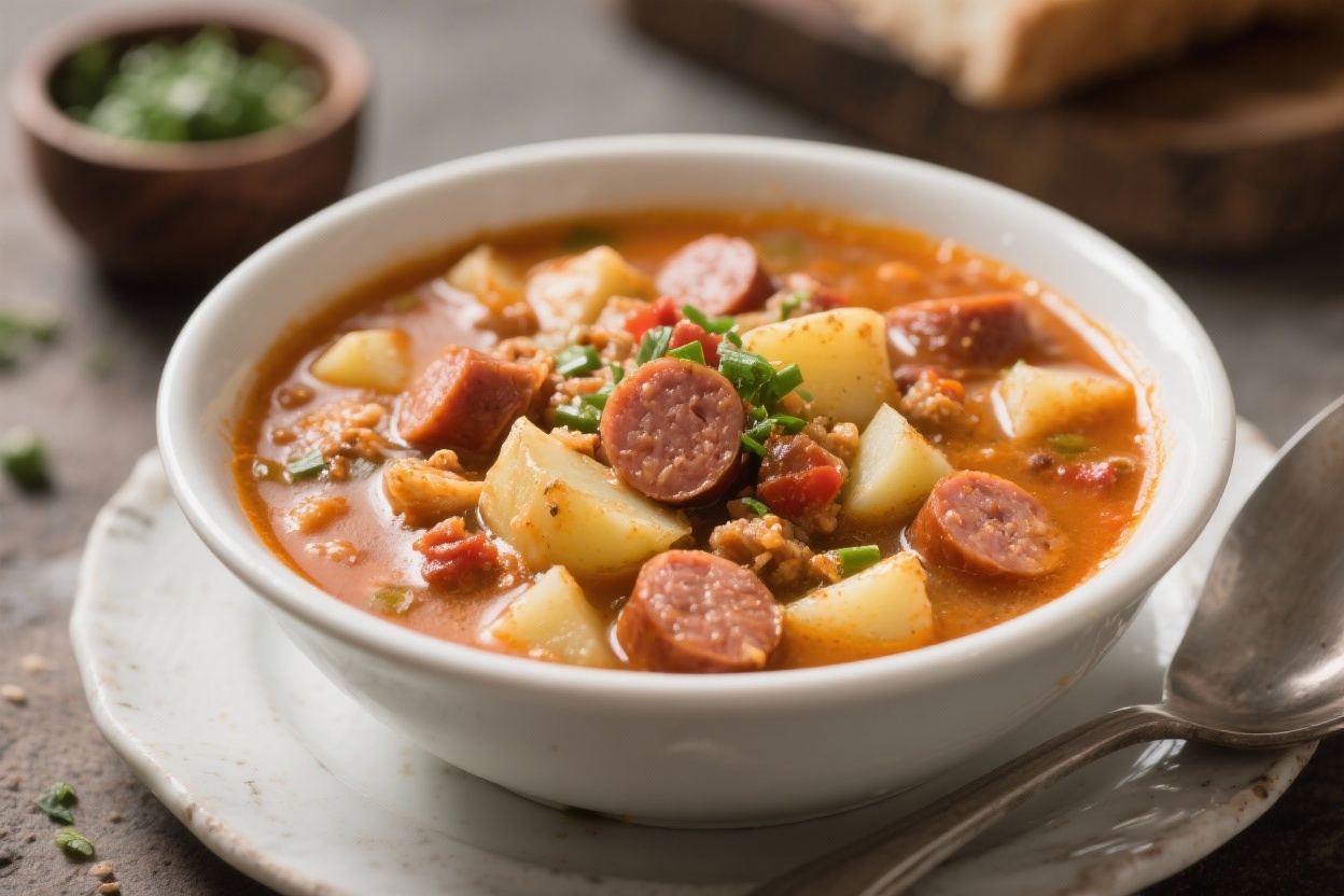 This recipe balances richness and brightness. The sausage builds a deeply seasoned base, while onions, garlic, and herbs round out the flavor.