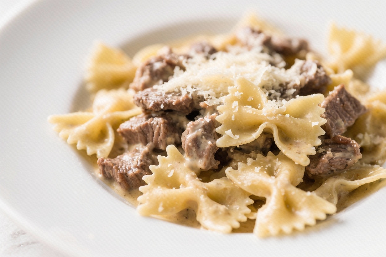 Creamy Parmesan Garlic Beef Bowtie Pasta – Comforting, Hearty, and Easy